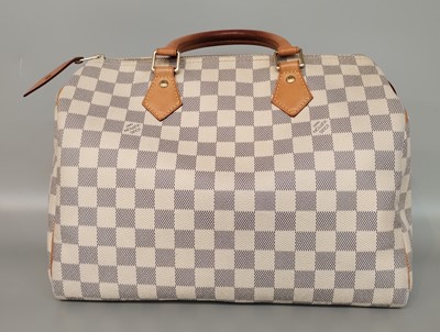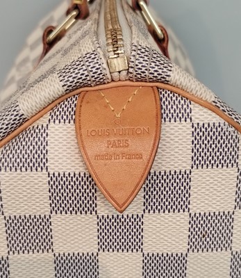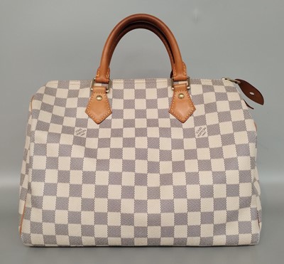 Louis Vuitton Speedy 30 Bag in Damier Azur Canvas, circa 2015, in cream checks with brass-tone hardware, zip fastening and internal pocket, 30cm by 17.5cm by 22cm, together with dust bag and box