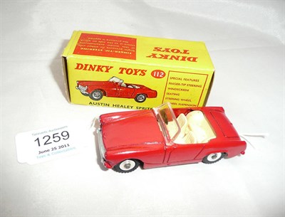 Lot 1259 - A Boxed Dinky Austin Healey Sprite No.112, with red body, cream interior and spun hubs