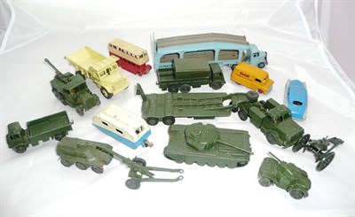 Lot 1267 - Fifteen Playworn Dinky Vehicles, including military, commercial, bus and car