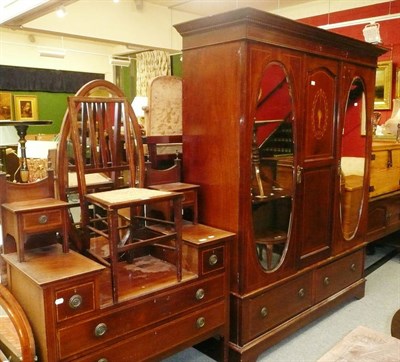 Lot 1172 - Late Victorian inlaid mahogany three piece bedroom suite and a similar bedroom chair