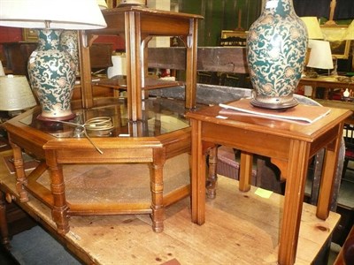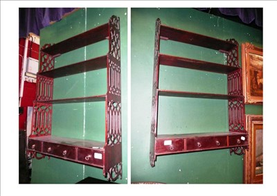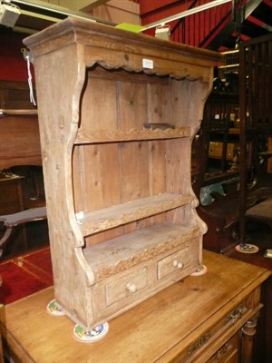 Lot 1214 - Rustic pine hanging wall rack with two fixed shelves and two small drawers
