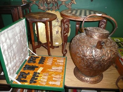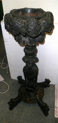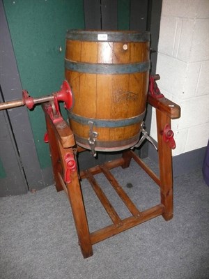 Lot 1244 - An oak and metal bound barrel on stand and a 56 Ib weight