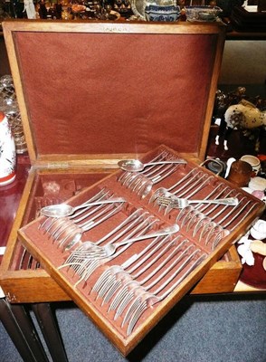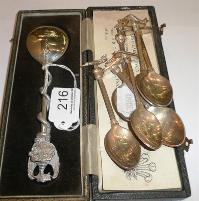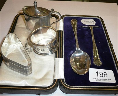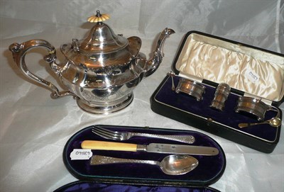 Lot 275 - A pair of silver condiment spoons, a set of six pastry forks, a set of six replica gilt...