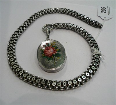 Lot 205 - A late Victorian star and link necklace, with locket enamelled with a rose
