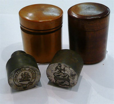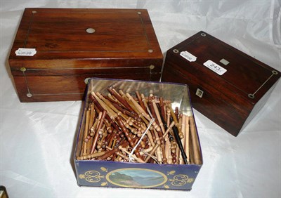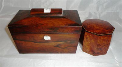 Lot 242 - A Victorian rosewood tea caddy, and a burr amboyna and line decorated octagonal tea caddy