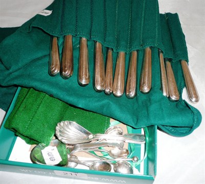 Lot 211 - Eighteen silver handled knives, three caddy spoons and five coffee spoons