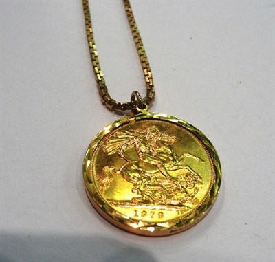 Lot 222 - A 1979 full sovereign loose mounted as a pendant on a 9ct gold box link chain