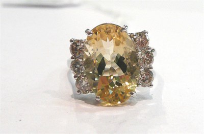 Lot 226 - A 14ct white gold yellow scapolite and diamond ring