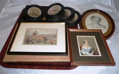 Lot 252 - Selection of framed prints, oils, two pencil drawings and six ' Scrimshaws'