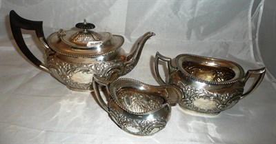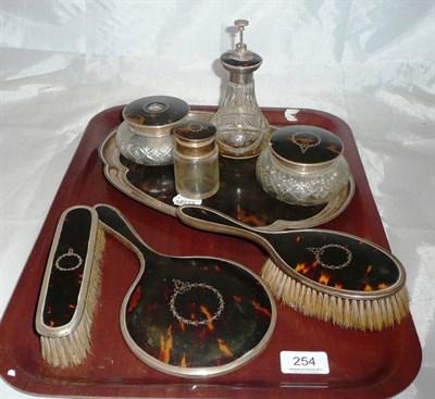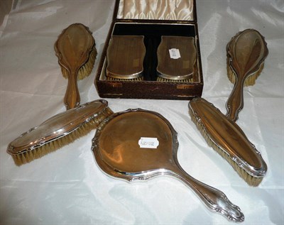 Lot 288 - Five piece silver backed dressing table set and a cased pair of silver clothes brushes