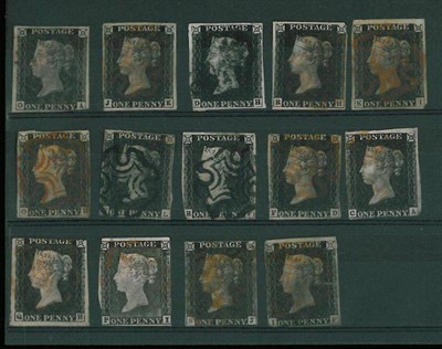 Lot 436 - Great Britain. 1840 1d black F-I. Four margins used with red Maltese cross