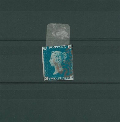 Lot 433 - Great Britain. 1840 2d blue C-H three margins. Used with red Maltese cross