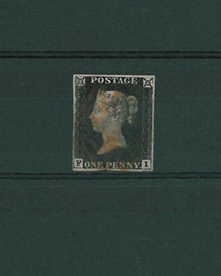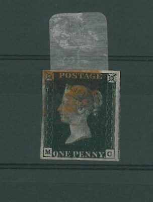 Lot 435 - Great Britain. 1840 1d black M-C four margins. Used with red Maltese cross