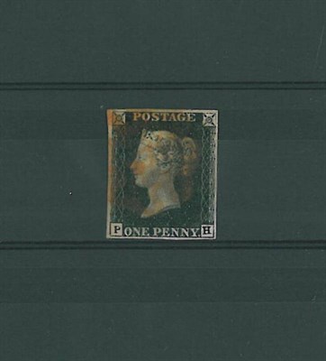 Lot 439 - Great Britain. 1840 1d black P-H. Four margins, used with red Maltese cross