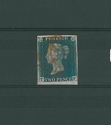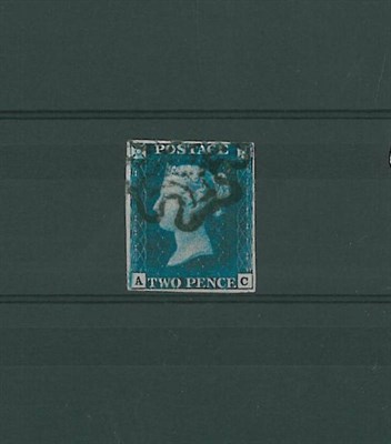 Lot 442 - Great Britain. 1840 2d blue A-C, plate 2. Four margins, used with black Maltese cross