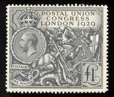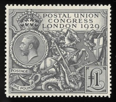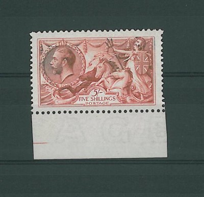 Lot 451 - Great Britain. 1919 5s Rose-red Sea horse, marginal very lightly mounted
