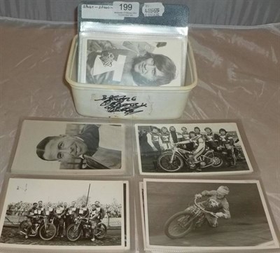 Lot 199 - Speedway - Forty real photographs of speedway riders, bikes and races