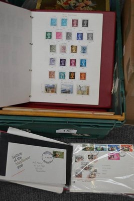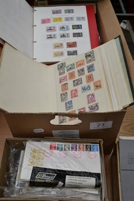Lot 61 - Two Boxes. Includes a collection of Great Britain FDC's in five cover albums and misc