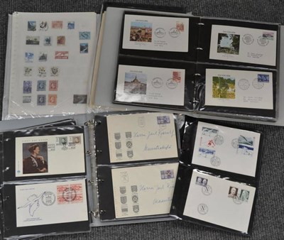 Lot 41 - Scandinavia in a Box. Includes FDC's, loose album pages, circulated club book etc