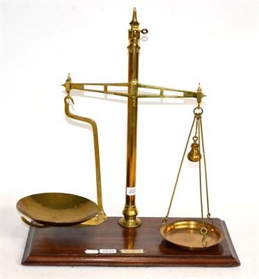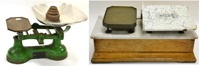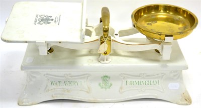 Lot 193 - Avery Person Scales with wooden base and twin sliding weight scales (24 stones and 14 lb)