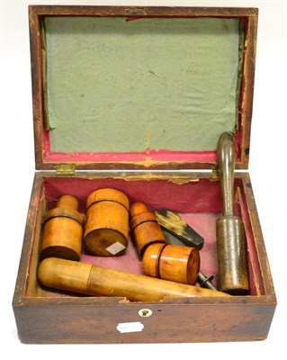Lot 240 - Georgian Post Mortem Surgical Set, in mahogany case, the scissors stamped Aitken of York