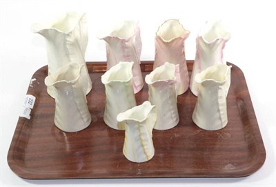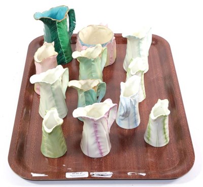 Lot 227 - Eleven Royal Worcester leaf moulded jugs, tallest 13cm and a Royal Worcester sucrier (12)
