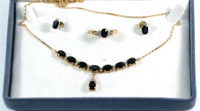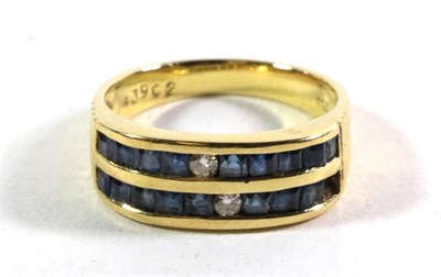 Lot 257 - A sapphire and diamond ring, stamped '750', finger size M