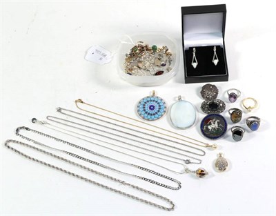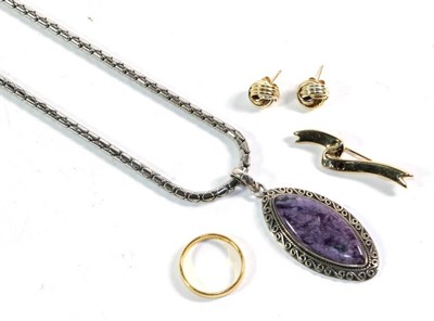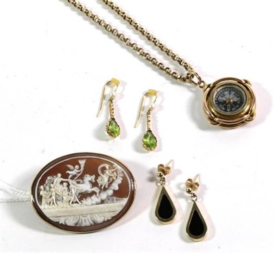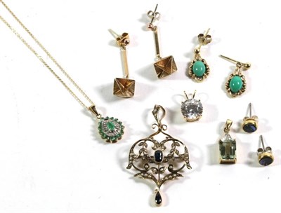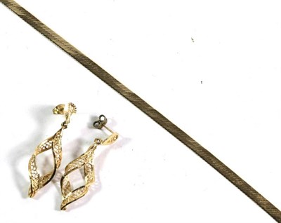 Lot 244 - A 9 carat gold fancy link necklace, length 42cm (a.f.); and a pair of 9 carat gold drop...