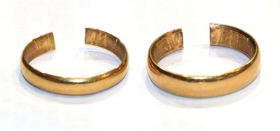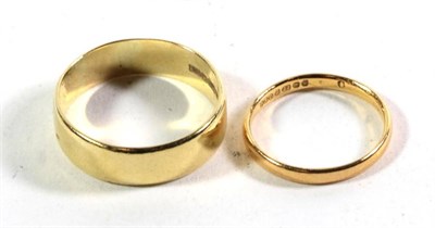 Lot 259 - A 22 carat gold band ring, finger size N; and an 18 carat band ring, finger size W (2)
