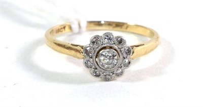 Lot 339 - A diamond flower head cluster ring, stamped '18ct' and 'PLAT', finger size N