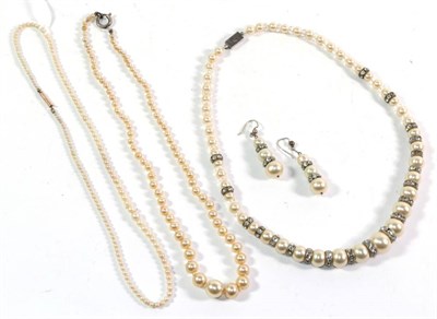 Lot 345 - A string of cultured pearls; and two strings of simulated pearls (3)