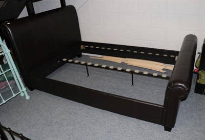Lot 1284 - A 19th century French oak double bedstead, recovered in cream fabric, 150cm wide