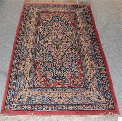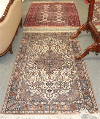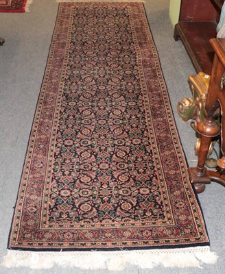 Lot 1263 - Indian runner, the indigo Herati field enclosed by samovar motif borders, 282cm by 81cm