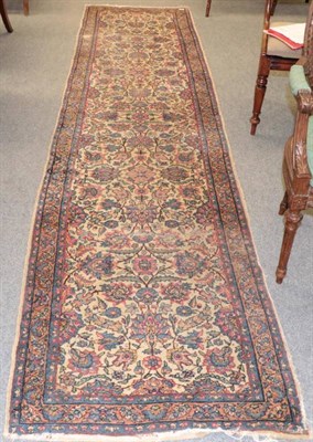 Lot 1258 - Kirman runner, the ivory field of vines enclosed by narrow borders, 354cm by 86cm