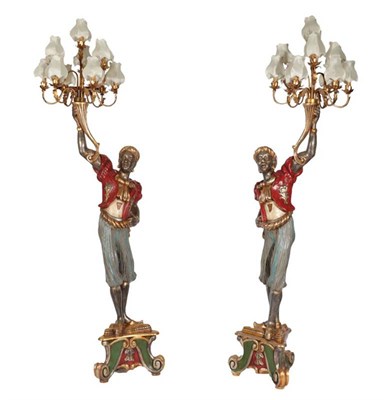 Lot 1270 - A pair of reproduction Venetian style Blackamoor lamps, 230cm high