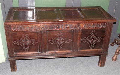 Lot 1275 - Joined oak chest, with hinged lid and carved frieze, dated 1670, 129cm by 52cm, 70cm high