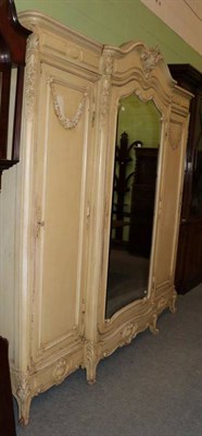 Lot 1282 - A 19th century French cream painted triple door wardrobe, 230cm by 47cm, 243cm high