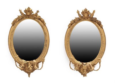 Lot 295 - A Pair of Early Victorian Gilt and Gesso Oval Girandole Mirrors, mid 19th century, the moulded...