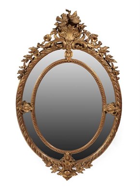 Lot 296 - A French Gilt and Gesso Oval Mirror, circa 1870, the original mirror plate framed with a beaded and