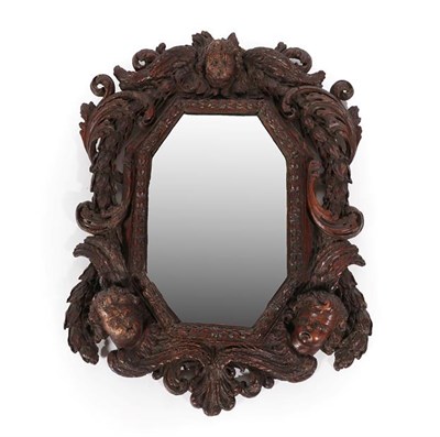 Lot 297 - A 17th Century Italian Baroque Wall Mirror, the later plate within an acanthus carved and...