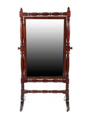 Lot 299 - A Regency Carved Mahogany Cheval Mirror, early 19th century, the mirror plate within a pivoting...