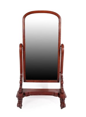 Lot 300 - A Victorian Carved Mahogany Cheval Mirror, circa 1870, the original mirror plate within a...